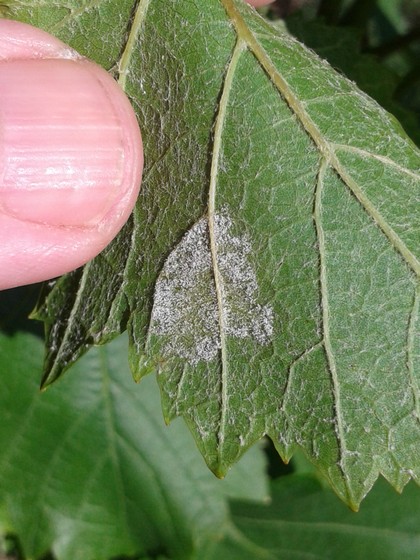 Grape leave mites: upper side of leaf showing a pronounced bump.