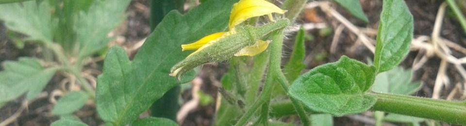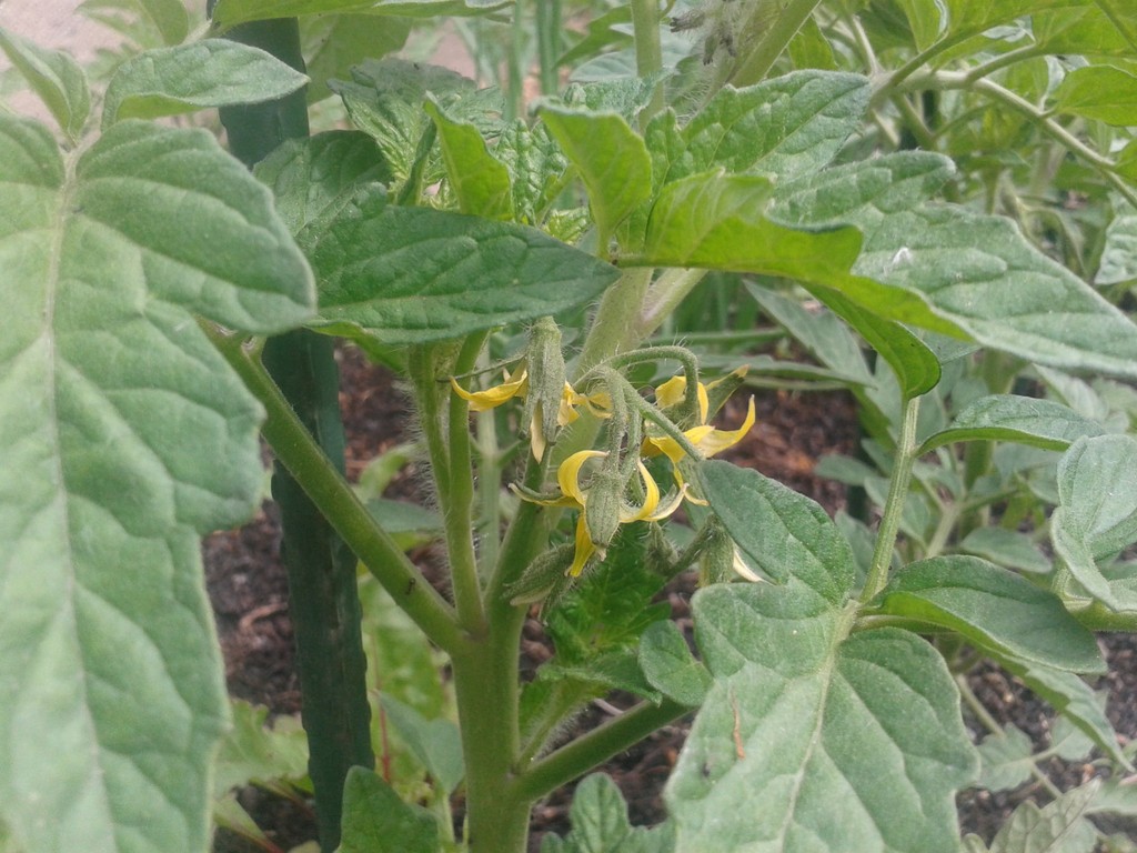 And the tomatoes are already starting to flower now. Some suggest to nip off such early flowers, to allow the plant to spend early spring energy into building better roots today, so to help strengthen the plant to make better tomatoes tomorrow. This is often good advice. But these tomatoes have been in the ground for several weeks now, so probably have a good(enough) root system, so I will leave these flowers.