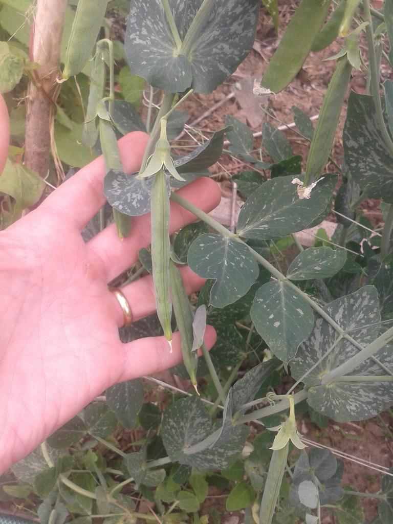 My peas flowered earlier this month, and now are growing pods this week. Always a good sign. Means to me Spring is really under way.