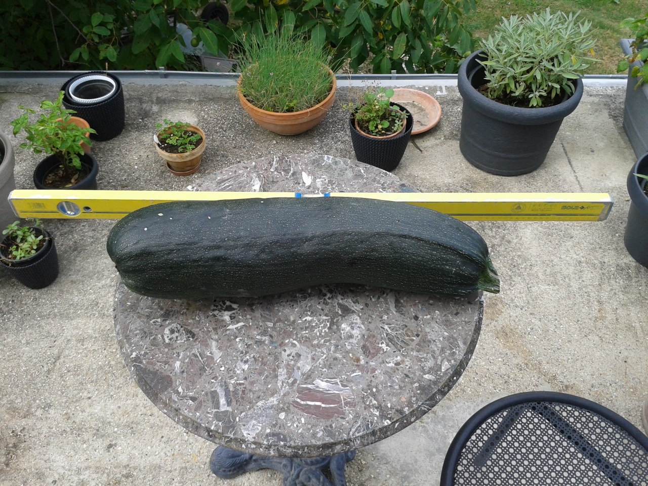But sometimes, Zucchini plants can get dense, and one can miss one. When I finally found this monster in August, it was over 60 cm (24 in) long and weighed in at 5.4 kg (12 lbs).