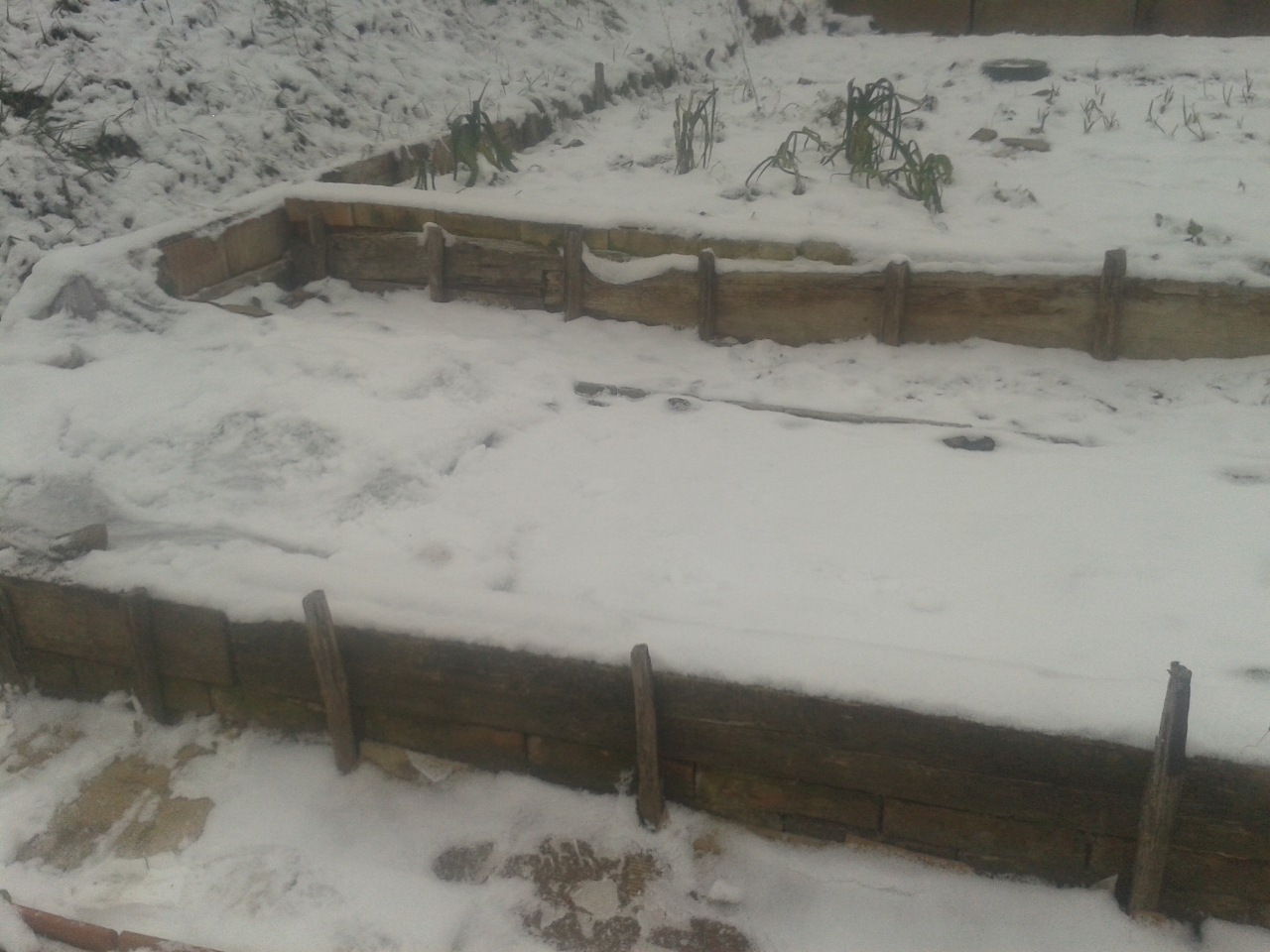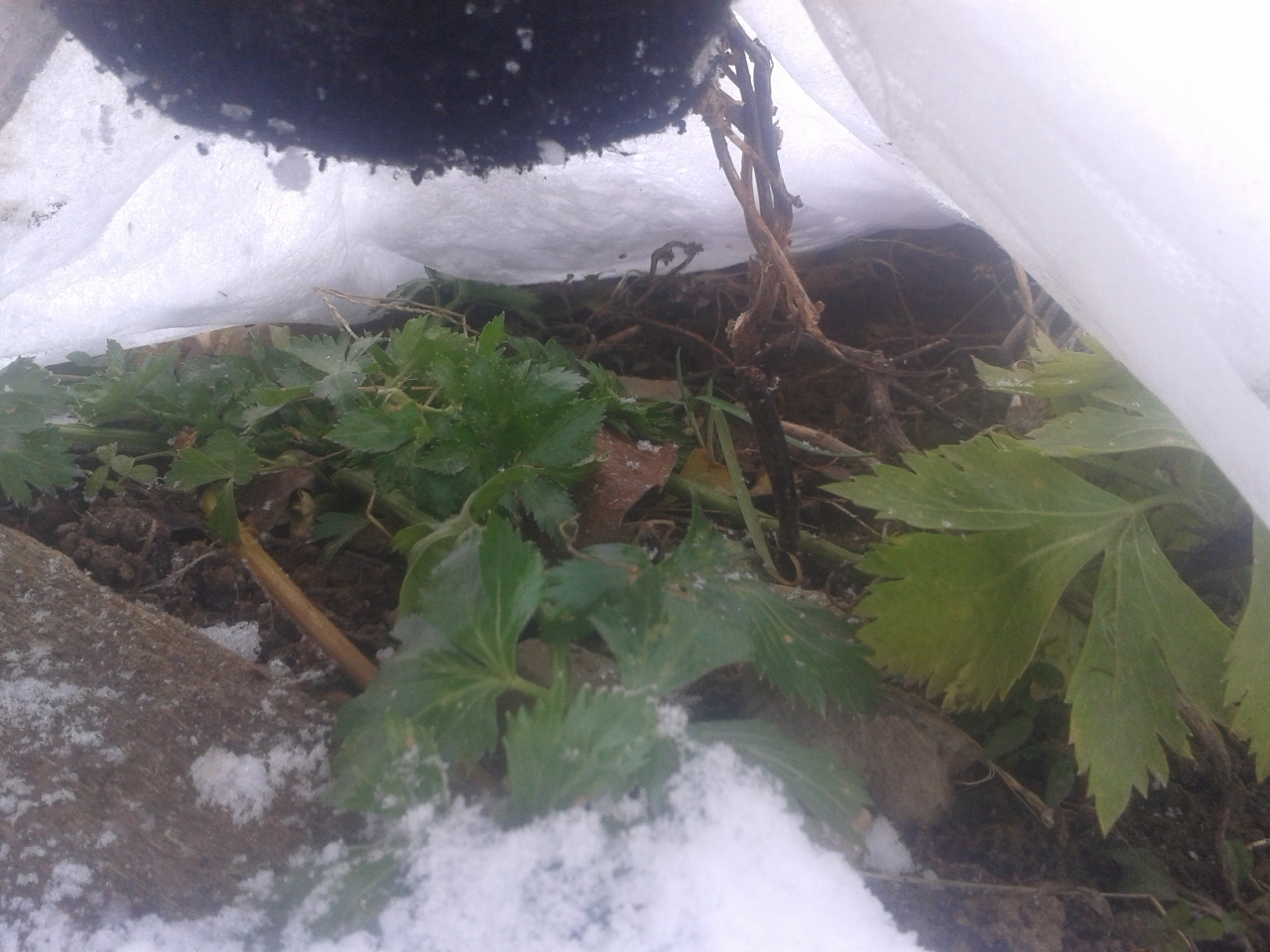 It is January. It is cold. Temperature was -12°C (10°F) last night. And it has been snowing. The garden looks bleak. But actually many plants under that snow are also under garden fleece. I simply brush away a little snow, and harvest some winter vegetables for a winter soup.