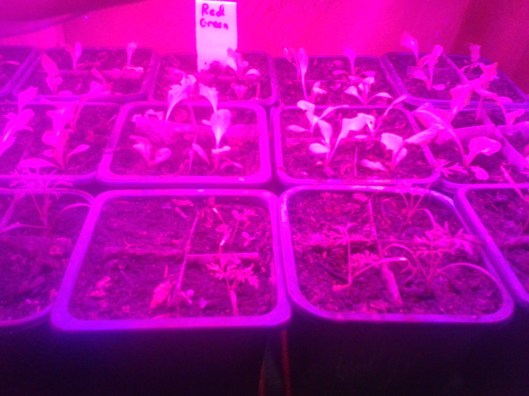 - Placing seedlings under outside low tunnels each day (taken in at night) seems to stimulate more growth than seedlings under the lights alone. But the lights also helped to get the seedlings ready to place outside under the low tunnels (reduced the need to “harden off”). So a win-win.