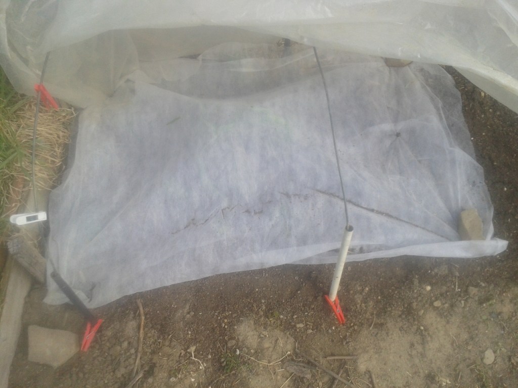 fleece, frost, gardening, low tunnel, peas, radish, spring, vegetables, weather, winter