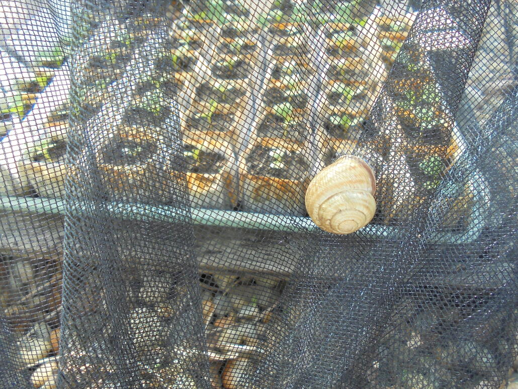 But today I actually felt sorry for a snail. So much snail food. So close, beyond the mesh. Poor little guy…. 😦